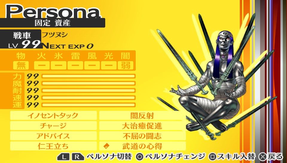 主:雷・風耐性のペルソナに付け替えてイノセントタック