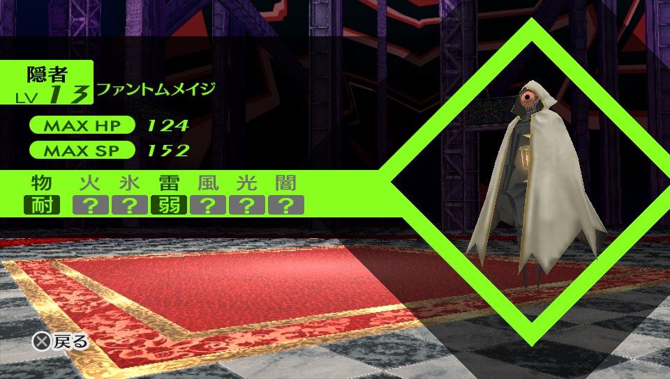 個人的雪子姫の城最悪シャドウ筆頭。ボスや金手を除いて最高の耐ステータスを誇り当然のように物理耐性まで併せ持つ。その上、突撃・タルカジャスキル持ちで主人公キラーの役割を単体で完結させる畜生っぷり。